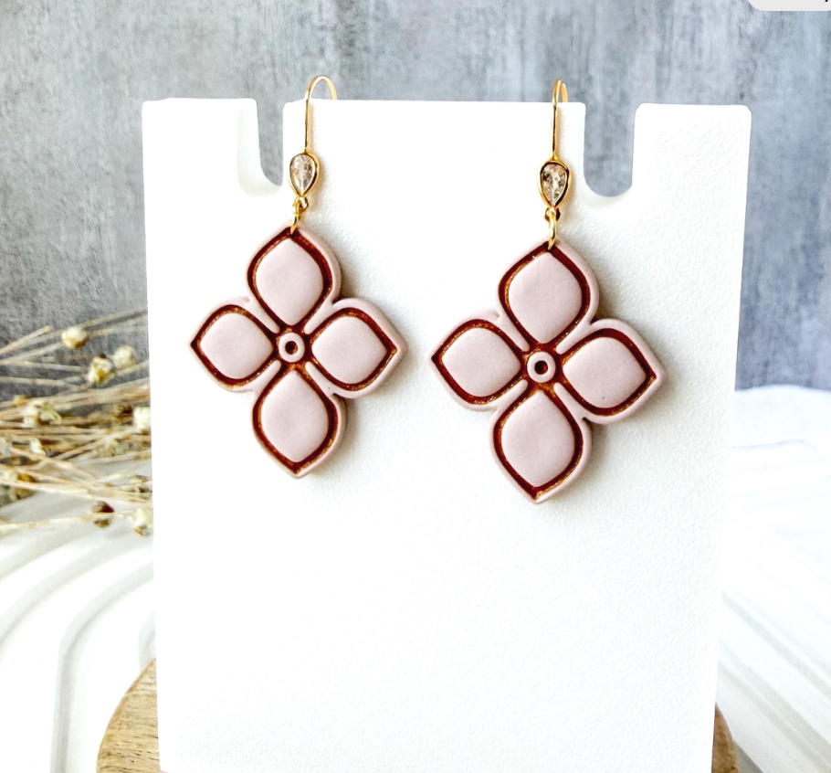 Spring Floral Pastel Cross Dangles with Pearl or Gold Stud